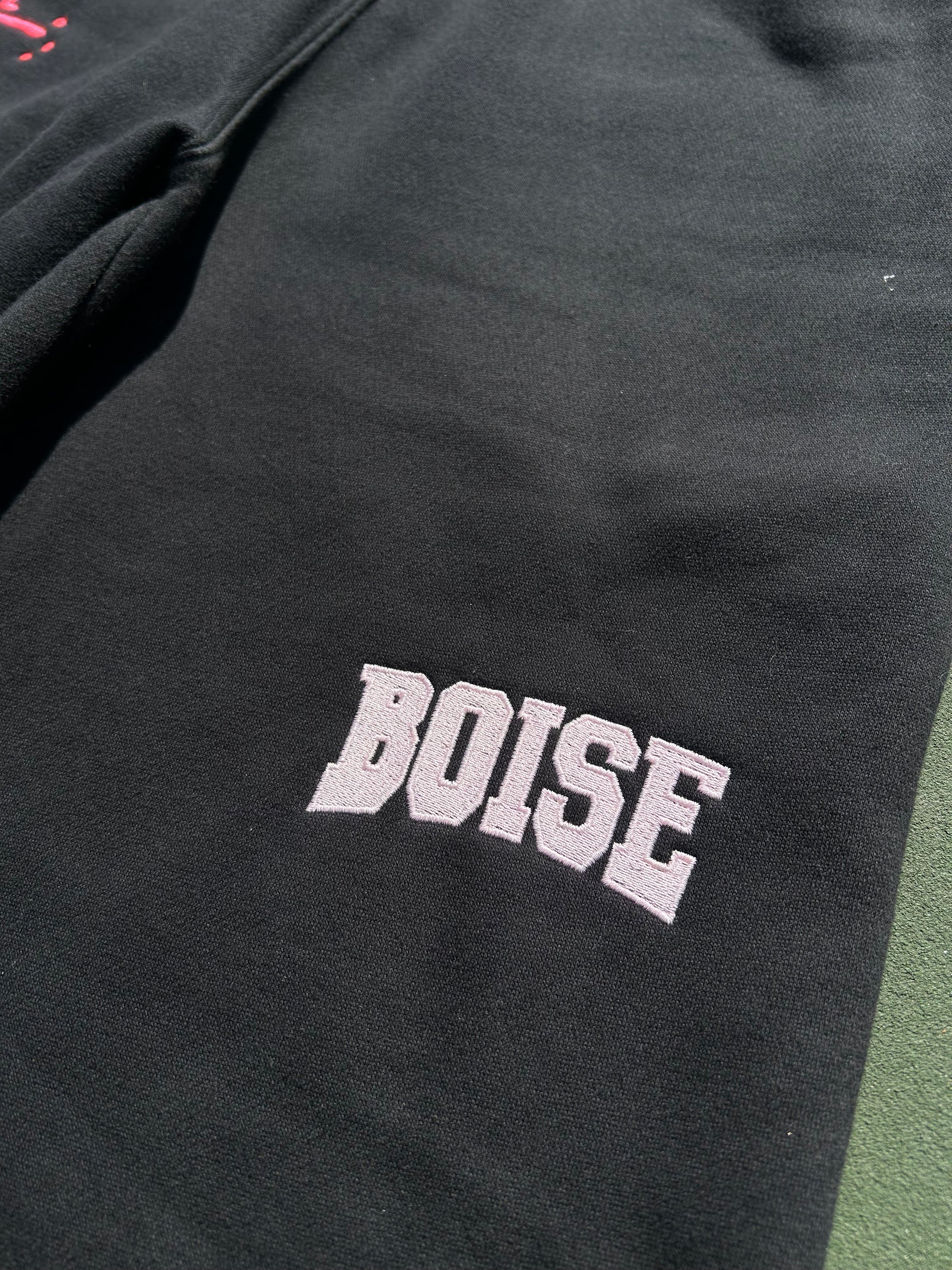 BOISE in Light Pink just above left knee